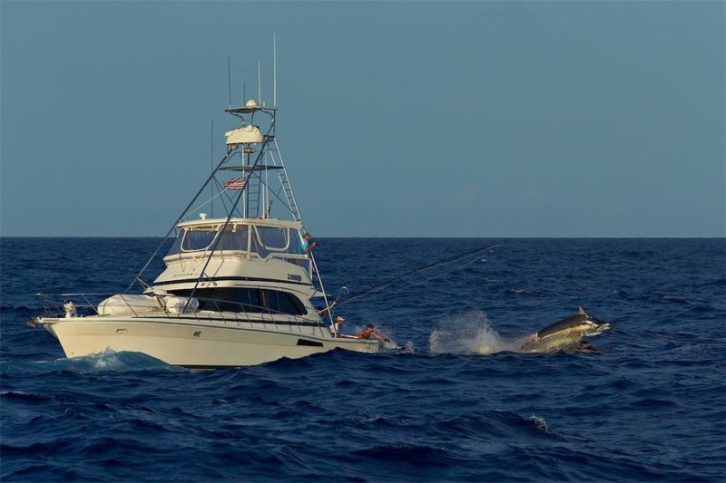 Wie bereits erwähnt, fanden wir trotz Top-Köder nicht den Fisch, den wir wollten, währenddessen ein Supergrander direkt neben unserem Boot gehakt wurde. Da es sich bei diesem Fisch um ein sehr großes Exemplar handelte, wollte man diesen auf alle Fälle mitnehmen. Nach 15 Minuten war der Marlin am Gaff, doch er bog dieses auf. Nach weiteren 15 Minuten passierte das gleiche mit dem 14/0er Circle Hook und der Marlin war wieder frei. Ob er die erlittene Verletzung im Rücken überlebte bleibt leider für alle auf immer und ewig ein Geheimnis.