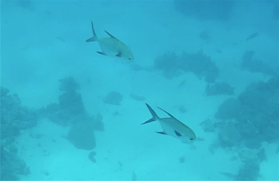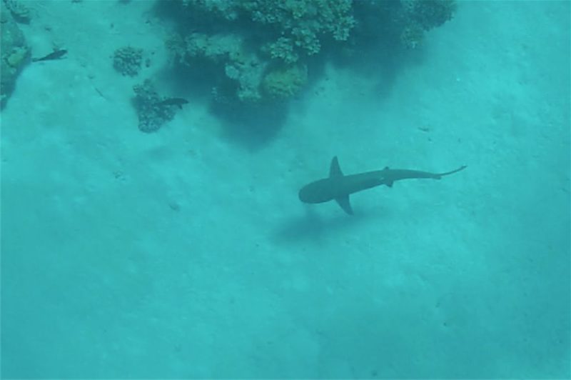Nach dem Frühstück fischten wir mit leichtem Gerät auf „Köderfisch“ und durften fast täglich mit einer Überraschung rechnen. Wir fingen dabei eine breite Palette aller möglichen Arten. Wichtig war immer, den Fisch so schnell wie nur möglich an das Boot zu bekommen, denn hatte man einen größeren Fisch an der Leine und brauchte länger als 15 Min., blieb oftmals nur noch der Kopf oder auch gar nichts mehr übrig. Haie gab es am Riff wie Sand am Meer und sie waren immer sofort an Ort und Stelle.