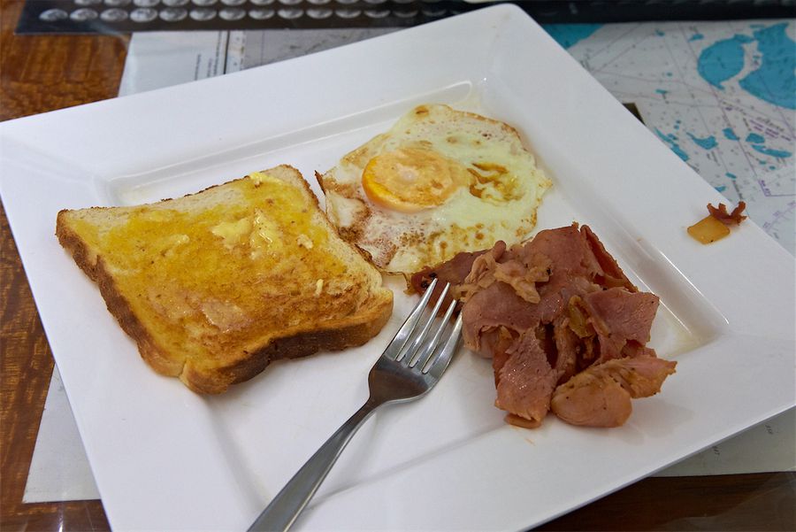 Gegen Mittag gingen wir gerne für ca. eine Stunde an einer schönen Schnorchelstelle vor Anker und schossen mit dem Speer unser Dinner. Auch dabei haben wir immer zugesehen, unseren Fang in Sicherheit zu bringen, denn mit knurrenden Magen wollten wir nicht in die Koje.