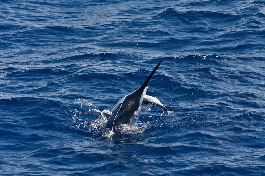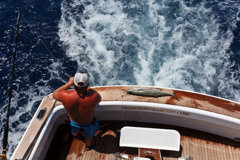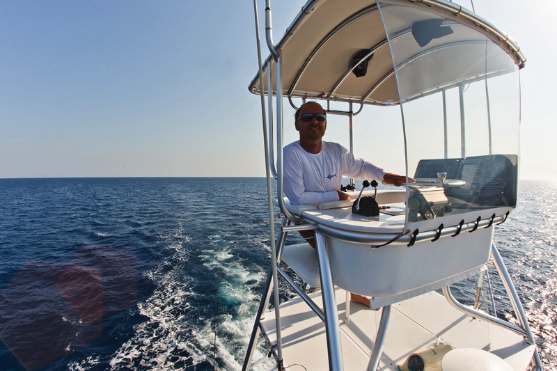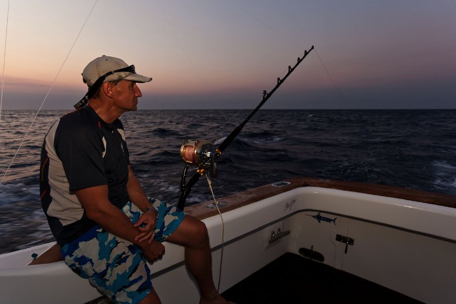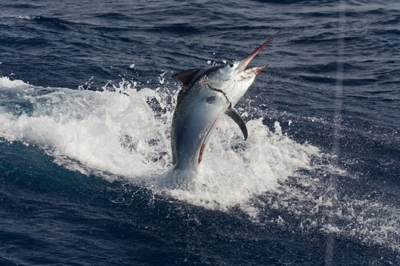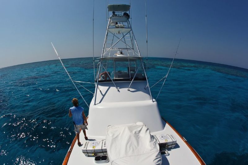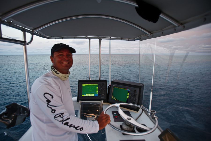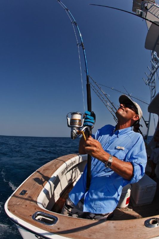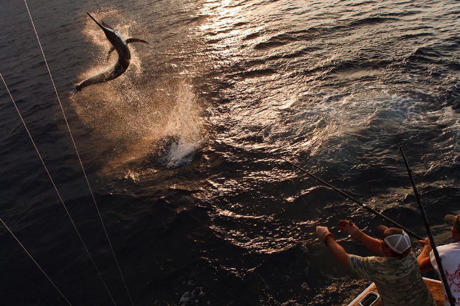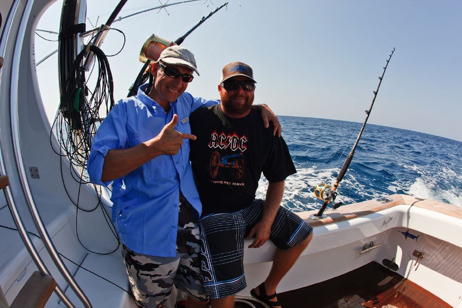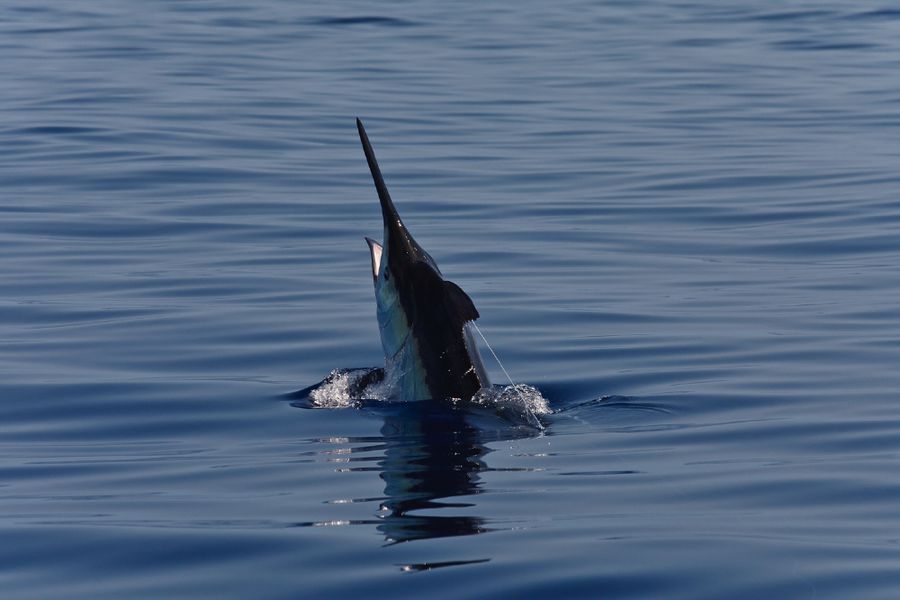 Während der ganzen Zeit laufen immer vier Kameras mit: Zwei an Deck, eine auf dem Tuna Tower – in diesem steht der Kapitän, unabhängig von Wetter und Seegang, während der ganzen Marlinjagd! Auch läuft eine Unterwasserkamera mit; diese Bilder werden auch zeitgleich auf einem großen Flatscreen an Bord gezeigt und aufgezeichnet. Hat der Skipper einen Marlin gesichtet, meldet er sofort laut nach unten: „Markt one“ – Adrenalin ohne Ende und eine Gefühlsachterbahnfahrt ist dabei garantiert!