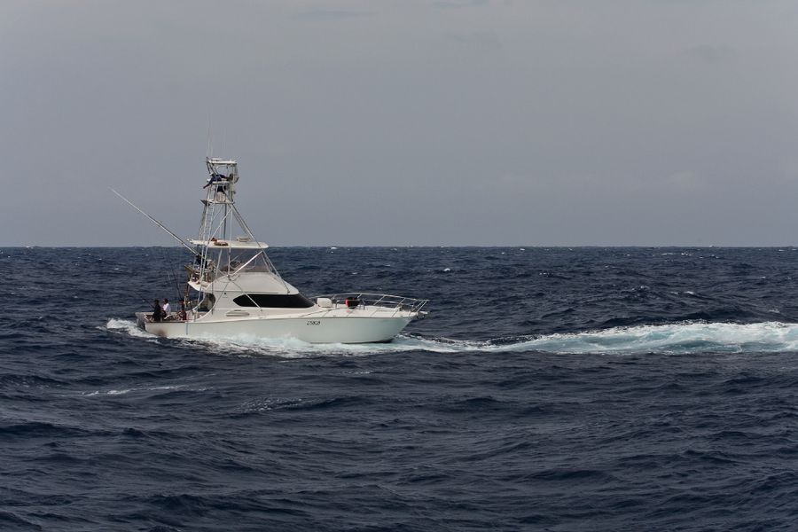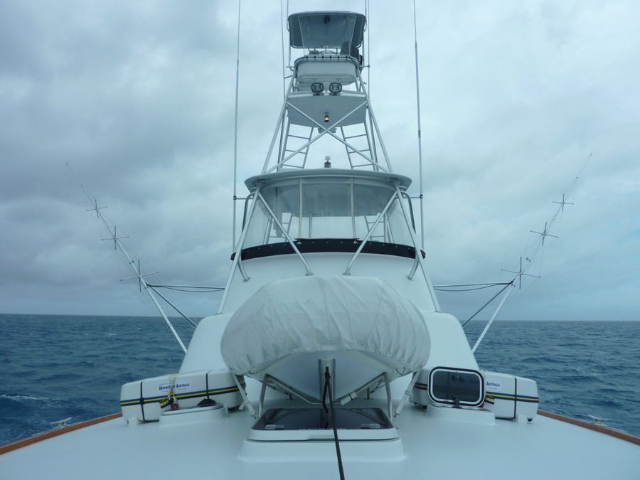 Andere Boote hatten bei ihren Stückgewichten dort mehr Glück; einige ihrer (freigelassenen) Marline lagen geschätzt über der magischen Grenze. Mit dem Wetter hatte ich leider auch etwas Pech. Die erste Woche war zwar ein Traum: Spiegelglatte und (fast schon zu) ruhige See; in der zweiten Woche genau das Gegenteil: Sturmböen bis 38 Knoten Windgeschwindigkeit, Wellen bis vier Meter und sintflutartiger Tropenregen. Meine Schlafkoje lag direkt über der Ankerkette im Bug der TRADITION und ich hatte in den stürmischen Nächten dort mehrmals den Eindruck die Ankerkette sei gerissen.