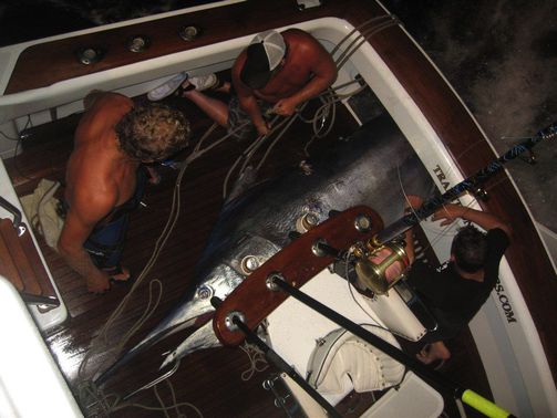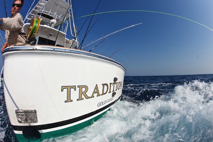 Nach dem Fang meines zweiten Marlin Granders vor den Kapverdischen Inseln im Mai 2011, kam von mehreren mir wichtigen Anglerfreunden der Hinweis und auch die Aufforderung: „Junge, jetzt musst Du aber auch noch einen Black Marlin Grander auf die Schuppen legen.“ Nachdem auch ich mich mit dem Plan angefreundet hatte, versuchte ich zuerst mal herauszufinden, ob und ggf. wie viele Angler bisher überhaupt die drei möglichen Marlin-Grander fingen. Meine Nachforschungen ergaben: Bis dato hat weltweit noch kein Angler einen Pazifik, Atlantik Blue Marlin und einen Black Marlin mit einem Gewicht von oder über 1000 lb. (453,56kg) gefangen! Wo meine Chance für einen Black Marlin Grander am größten ist, war mir von vorne herein klar. Ich musste also nur noch herausfinden, welches Boot dort den besten Ruf hat. Offenbar scheint momentan Kapitän Tim Richardson und sein Boot TRADITION die beste Adresse dafür zu sein.