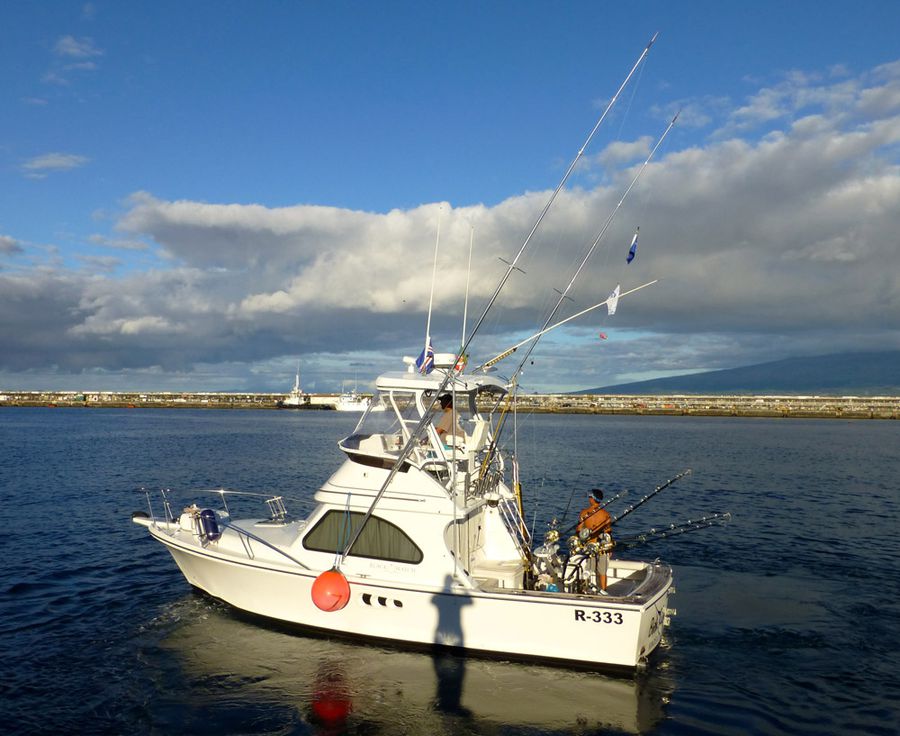 Nachdem letztes Jahr die geplante Angelwoche auf der Hauptinsel der Azoren „Sao Miguel“ durch den Hurricane „Nadine“ förmlich ins Wasser fiel, wollte ich es noch einmal wissen. Dieses Jahr charterte ich auf der Insel Faial für 10 Tage die „Boca Ratón“, eine 31 Fuß Blackwatch, mit Skipper Zak Conde und Mate Andrew Kennedy. Faial ist die fünftgrößte Insel der portugiesischen Inselgruppe der Azoren und wird wegen der vielen blauen Hortensienhecken auch Ilha Azul („blaue Insel“) genannt.