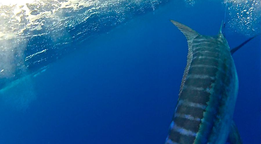 In der gesamten Zeit hatten wir 8 Marline hinter unseren Lures gehabt, 6 Bisse bekommen und 4 davon gefangen.
