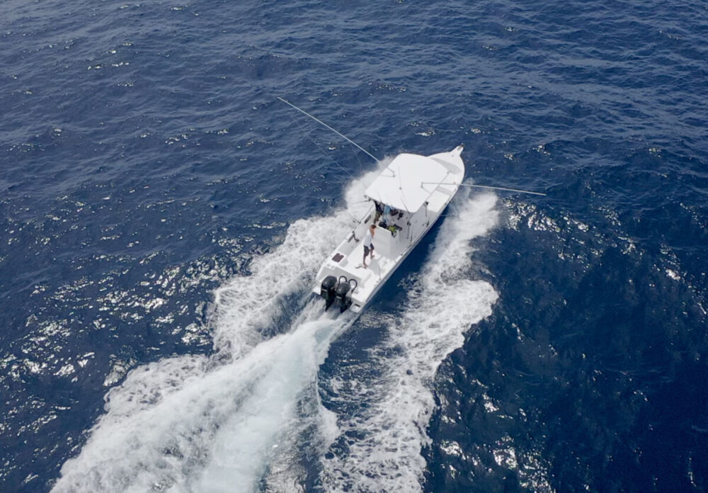 The “FRENZY” is a 32 foot center console boat with plenty of fishing space for up to 4 anglers. She comes powered by a pair of 200 Suzuki lean burn engines and can cruise at a top speed of 25 knots. The Frency is equipped with a full range of electronics, along with a multimedia system, an ice box, a fighting chair, live bait tank, tuna tubes and a toilet for your comfort.