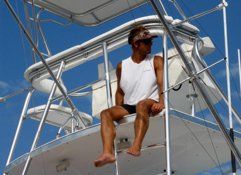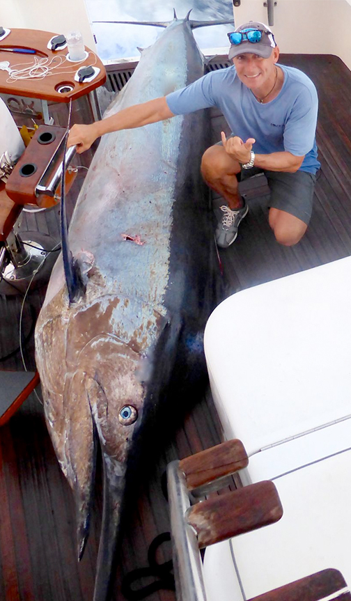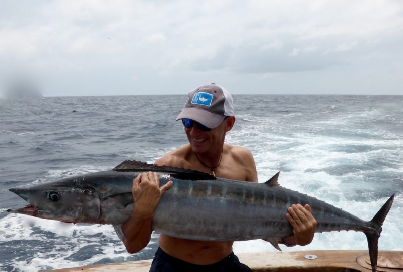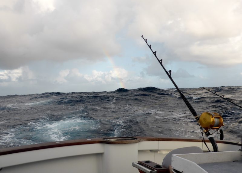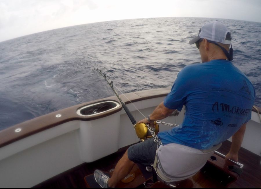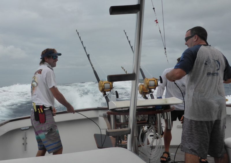 Die restlichen Tage gestalteten sich ähnlich zäh, sportliche Wetterbedingungen gepaart mit grünem Wasser und wenig Fisch für alle. Wir haben noch weitere 3 Schwarze Marline mit bis zu geschätzten 800 Pfund und einen kleinen Blauen Marlin gefangen. In diesen Tagen hatten wir noch einen Monsterbiss. Der Marlin schraubte sich gleich danach in Zeitlupe aus dem Wasser und sprang mit großen Sätzen auf und zu und schüttelte den Köderfisch mit Haken wieder ab. Bad Luck, er war sehr groß, ob er groß genug gewesen wäre lässt sich nur schwer sagen.