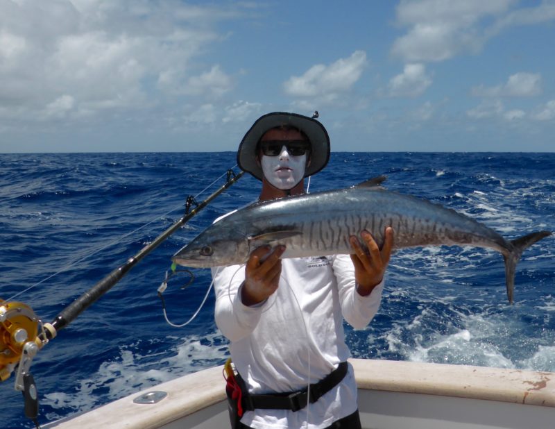 Nachdem an unserem ersten Angeltag dort auch noch sehr wenig gefangen wurde und wir keinen Fisch gesehen hatten, haben wir uns entschieden, am darauf folgenden Tag zu den weiter südlich gelegenen Riffen zu fahren. Am 2. und 3. Tag hatten wir insgesamt 5 Bisse von kleinen Marlinen und fingen 2 davon.